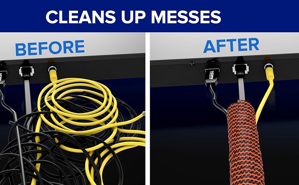 • FLEXIBLE WIRE LOOM. Maximm Cord Organizer with split tubing design for easy cord management that can hold 4-6 cords while it closes tightly around your cables for perfect wrapping. With a diameter of 1/2 inch, it's a reliable wire cover especially cord covers for wires on floor or cord covers for wall mounted TV. UL certified.