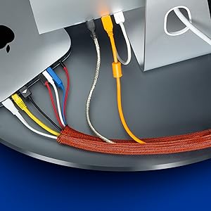 • EASY TO USE. This cable protector can be used at any desired length by trimming with scissors or using a lighter to lightly burn both ends of the loom for concealment. Recommended desk cable management, or in the living room as it helps maintain a well-organized environment. Our cable management sleeves can easily fit in at any corners where wires have to be kept hidden.