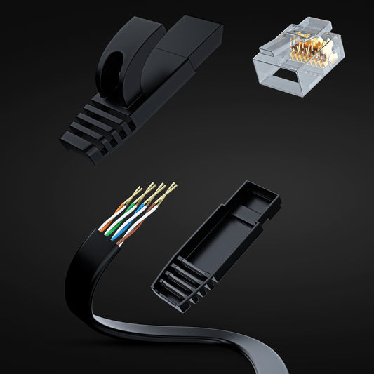 Cat6 Ethernet Cable Flat High-Speed Network Cables for Gaming, Streaming, Router, Modem, PC, PS5, Xbox - Durable & Space-Saving Design - Black - 1.5 FT