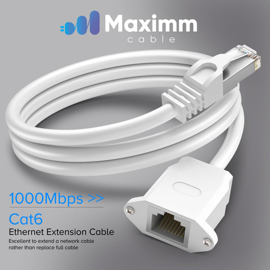 Maximm Cat6 Ethernet Extension Cable Male-to-Female Connector - 20 FT
