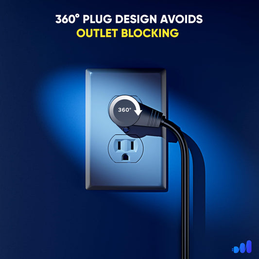 Maximm Power Cord Flat Plug 360° Rotating PC Cable 3 Prong for Desktop, Printer, Scanner, 16 AWG, IEC13 - 1 FT - Black
