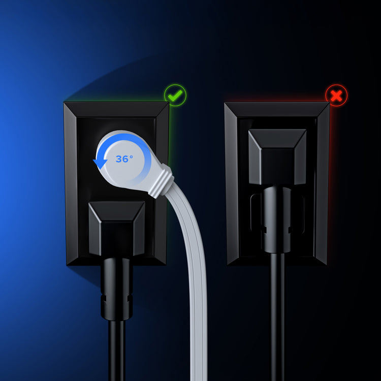 SPACE SAVER: Convert your standard AC power cord to a slim angled plug, providing angular flexibility. Plug into the top outlet and still have usage of the bottom outlet.