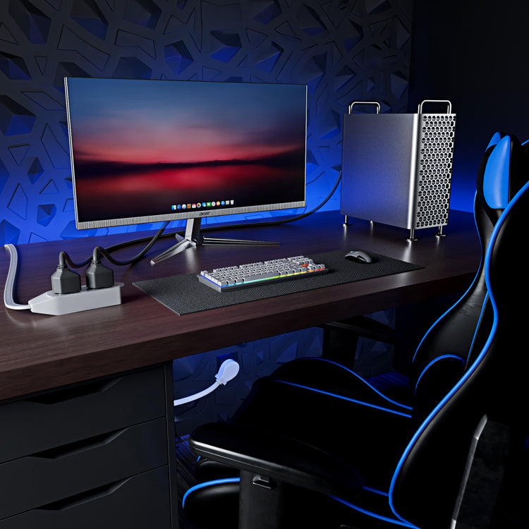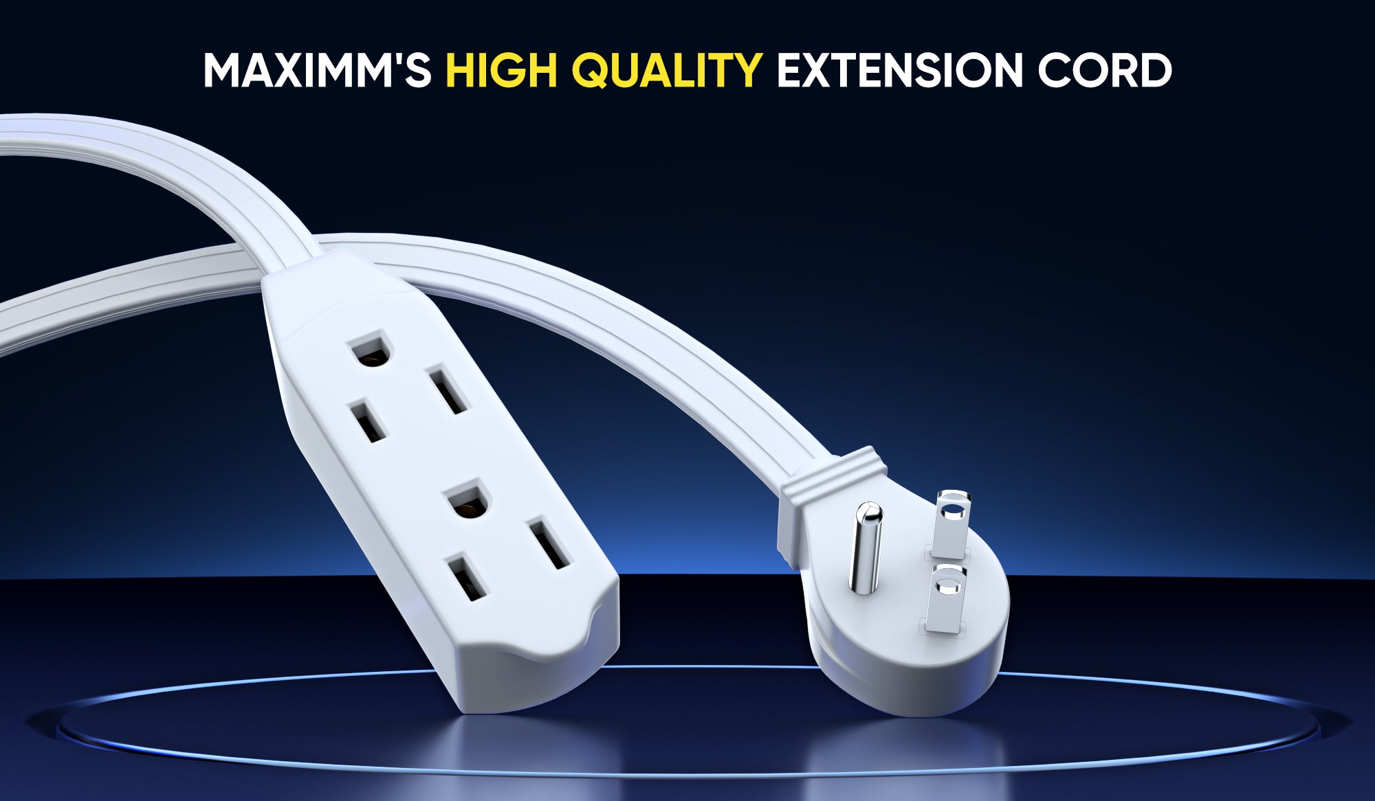 ANGLED PLUG: The Maximm extension cord is top quality featuring a 45° degree angled flat supply plug with 3 female outlet connectors for additional power.