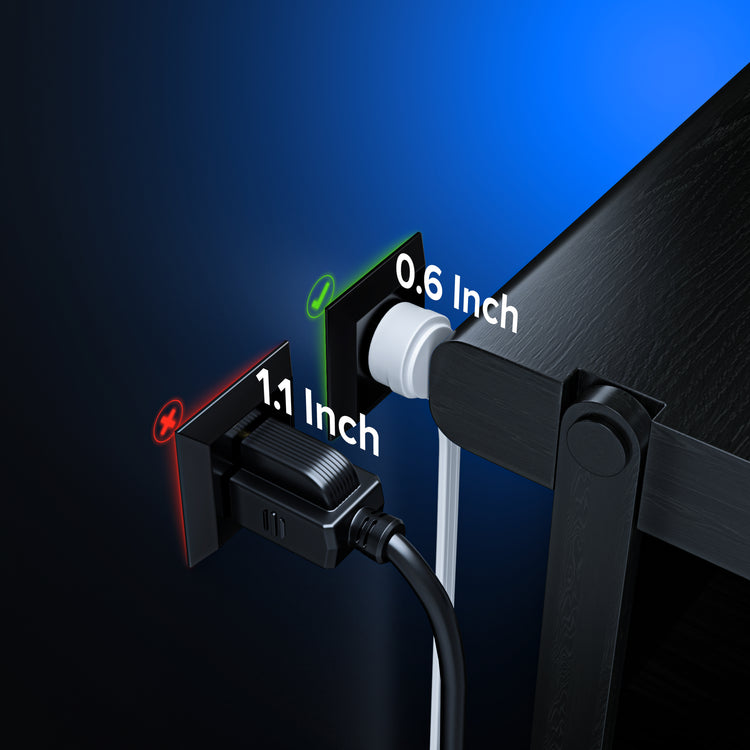 FLAT PLUG: Designed for tight spaces like behind furniture, bookshelves, desks or anything which is close to the wall not allowing you to use the standard outlet.