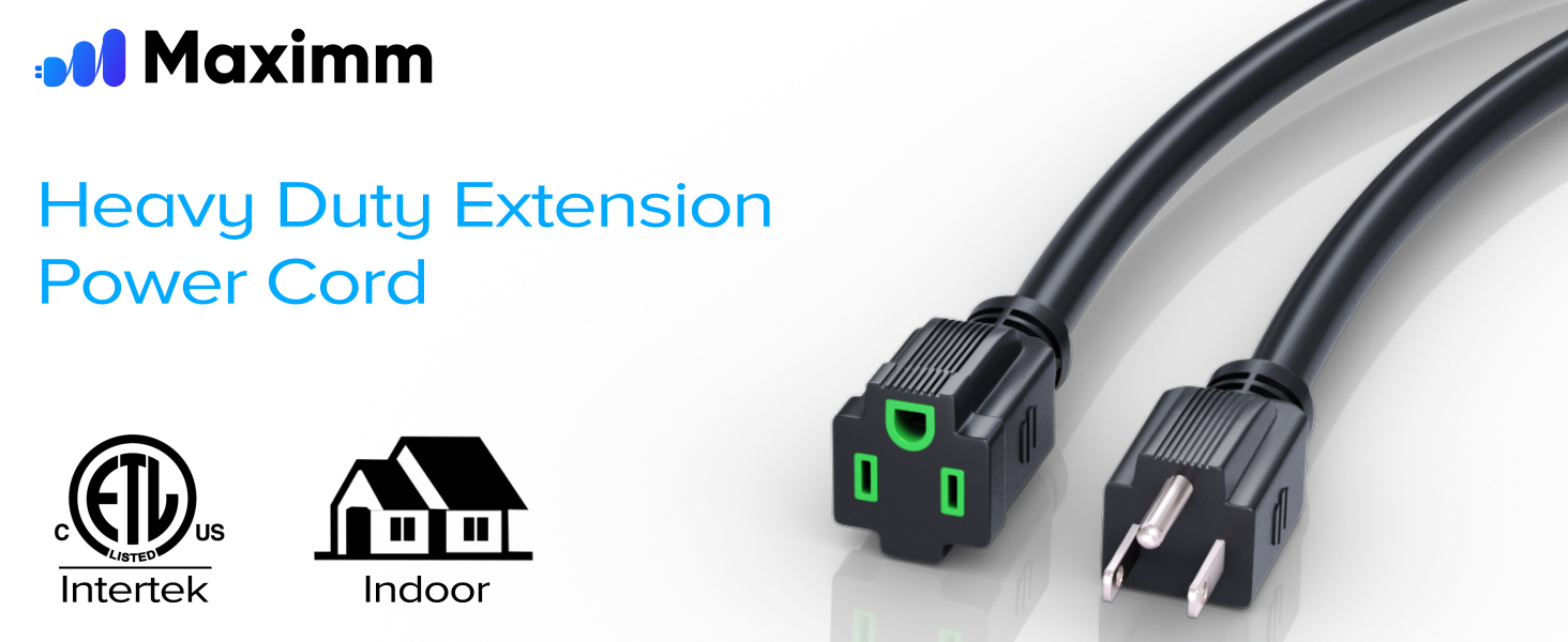 Maximm 12/3 Extension Cord 1-Outlet SJTW Heavy Duty Indoor ETL Listed, 3 Prong Plug, Power Cord for Appliances - 0.9 FT