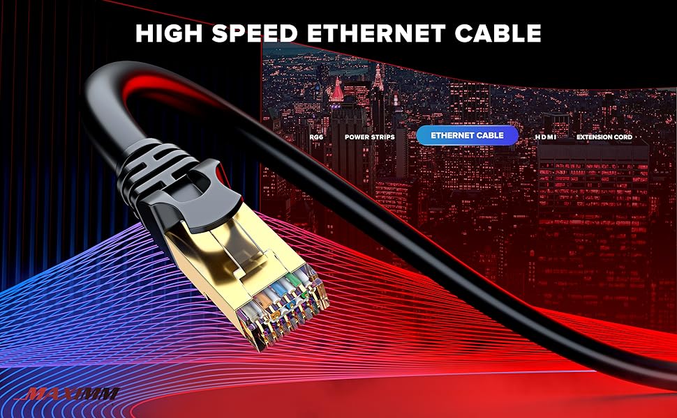 Cat 7 Ethernet Cable High-Speed Cat7 Internet & Network LAN Patch Cables, RJ45 Connectors