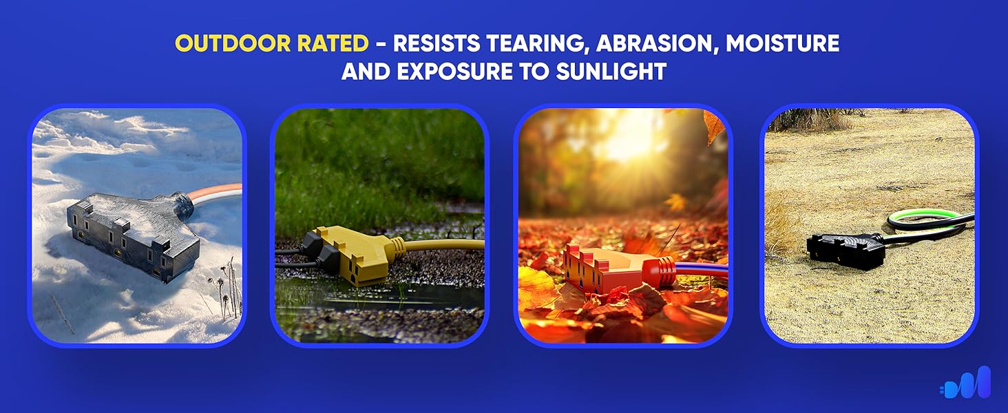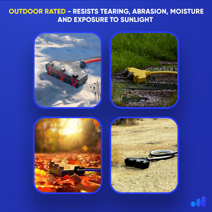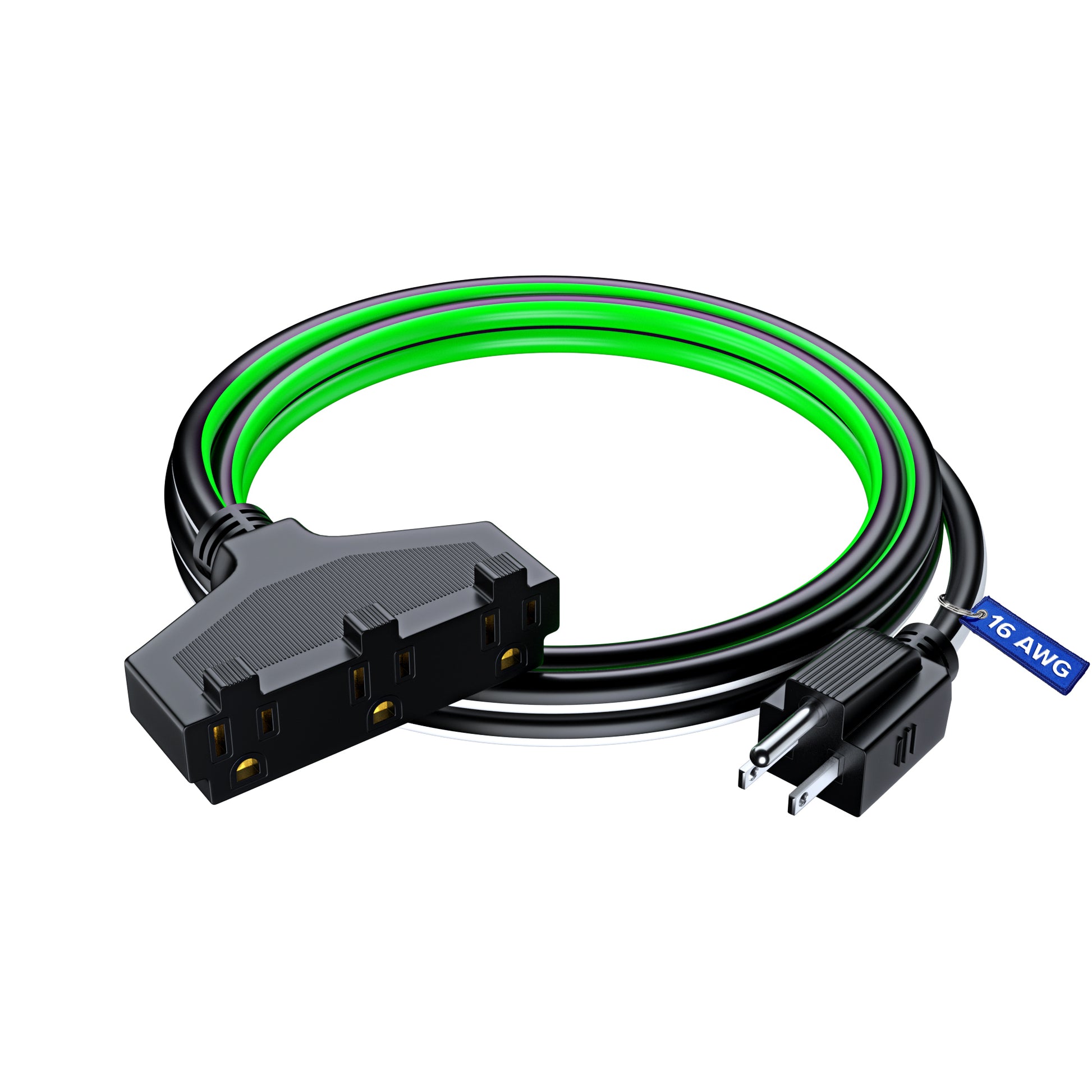 Extension Cord with 3 Outlets, 14 Gauge Indoor/Outdoor (3 Tone) - 6 FT - Black White and Green