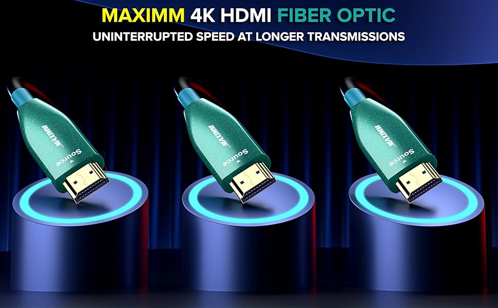 Maximm 4K HDMI Cable High-Speed Fiber Optic 18Gbps 4K60Hz, Unidirectional 2160p, 1080p, HDCP 2.2, 3D ARC-Compatible - 100 FT